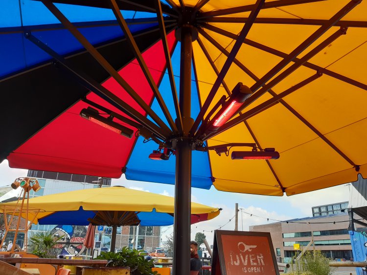 IJver bevindt zich midden op de iconische NDSM-werf in de industriële ,100 jaar oude, scheepsbouwloods. Op deze bijzondere locatie hebben we binnen mogen verwarmen met 10 stuks industiestralers van het merk Tansun Type Apollo. Op het buiten terras hebben we 12 stuks terrasstralers gemonteerd in de parasols. Alles wordt centraal geregeld via een touchscreen van het merk Elko.