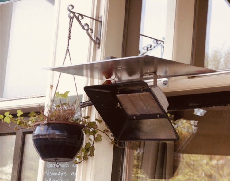 At this cozy cafe it is nice and warm to sit on the terrace. In the middle of Amsterdam we have mounted 2 gas radiators of the type 101 EID MK. These devices can be operated separately from each other.