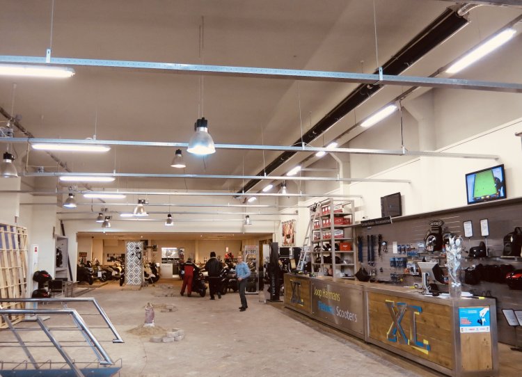 At the start of this branch, only mopeds and scooters are sold, but after a few years the shop on Kamperfoelieweg closes and, after a beautiful renovation/expansion, the bicycle department of Joop Harmans will also be moved to the Vuurwerkerweg.