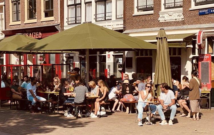 De Nieuwmarkt, in het centrum van Amsterdam, is een sfeervol plein, met talloze kleine cafeetjes en restaurantjes voornamelijk bezocht door Amsterdammers.